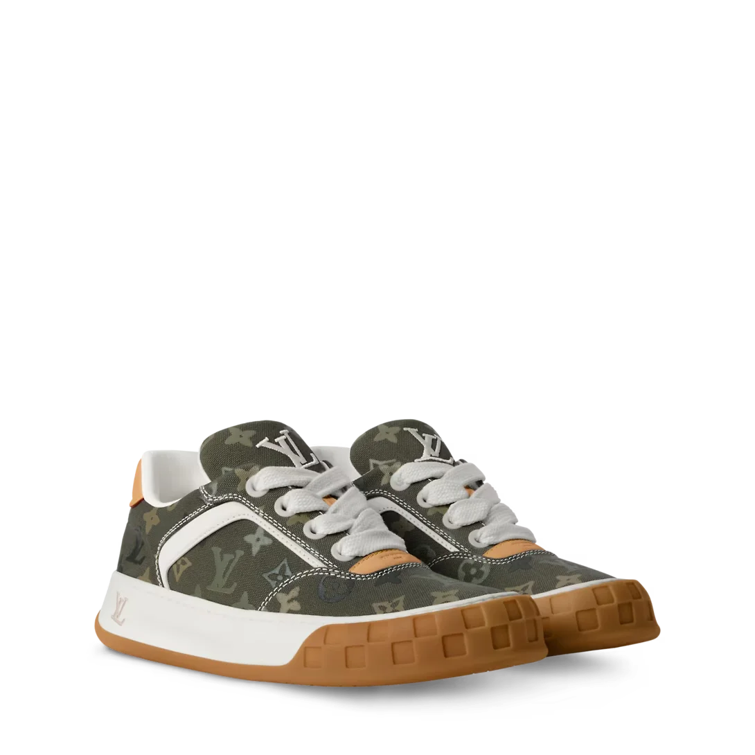 其名源于鞋舌上微斜的 LV 刺绣标识,这款运动鞋采用帆布材质,饰有本季由男装艺术总监 Pharrell Williams 设计的 Monogram Surplus 图案。别致浮雕技术为帆布带来了栩栩如生的 3D 雕版印花效果。呼应品牌工艺的皮革鞋眼片、宽幅织物鞋带彰显大胆姿态,厚实的橡胶外底在鞋头融入 Damier 棋盘格,并在外底饰有 Monogram 花卉,细节满满。