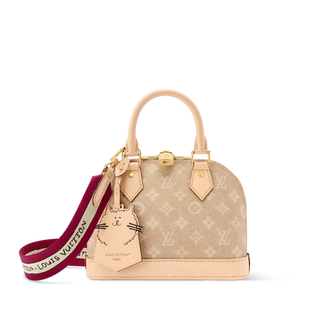 本款 Alma BB 手袋出自路易威登与 Grace Coddington 合作推出的 Travels With Grace Coddington 系列,聚焦妙趣 Meowgram 图案。帆布包身搭配牛皮革饰边,织物肩带以 Coddington 手写体呈现“路易威登”字样。考究挂锁和钥匙包再度印证品牌精湛匠艺。