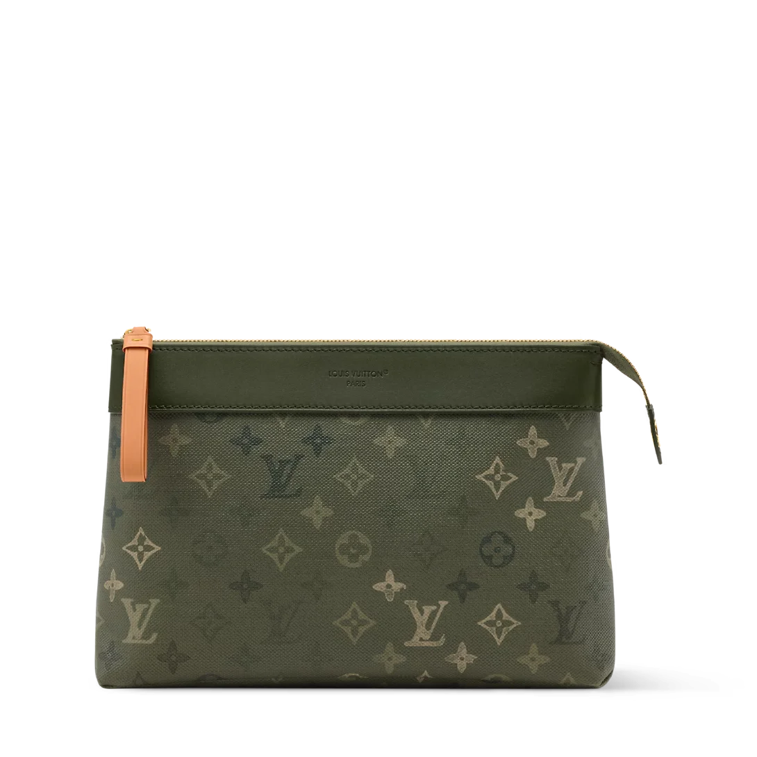 本款 Pochette Voyage Souple 手拿包为 Monogram Surplus 涂层帆布搭配同色皮革饰边与日晒色调皮革拉链头。Pharrell Williams 焕新演绎的 Monogram 图案再为休闲轮廓增添雅致气息。拉链主隔层与后袋方便收纳日常所需。