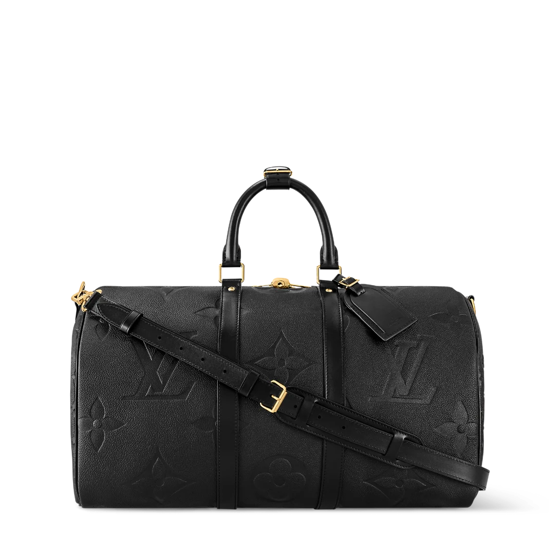 本款 Keepall Bandoulière 45 旅行袋为柔软 Monogram Empreinte Giant 皮革搭配金属件,其大号 Monogram 压纹含蓄传递典雅气息,拉链内袋再添功能细节。
